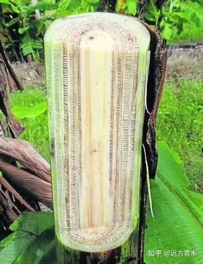 香蕉草被砍断后,你可以发现其主干类似于洋葱,甚至可以用手一层一层的剥开,相对于木头来说柔软非常多,另外汁液非常丰富,整个就是一个大号的草。